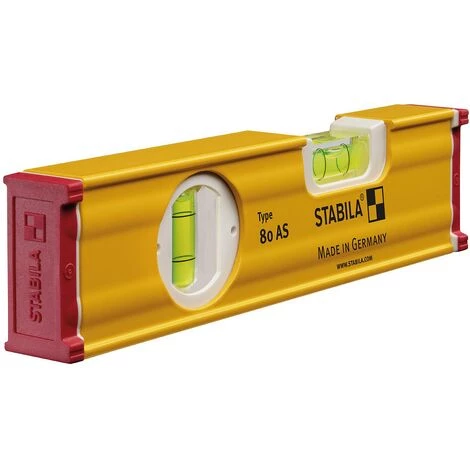 Sie suchen eine kompakte Wasserwaage und möchten bei der Qualität keine Kompromisse machen? Dann ist die Type 80 AS in der Länge 20 cm die richtige Wasserwaage für Sie. Schlankes und verstärktes Profil, zwei Messflächen, optimal ablesbare Qualitätslibellen und integrierte Rutsch-Stopper, die ein Verrutschen der Wasserwaage beim Anzeichnen verhindern. Die spezielle STABILA Einbautechnologie stellt sicher, dass die Wasserwaage auch nach vielen Jahren absolut präzise misst. Eine ausgesprochen lohnende Investition, die in keinem Werkzeugkoffer fehlen