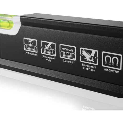 - Maximale Präzision auch nach vielfachem Einsatz durch eine UV-beständige Flüssigkeit in den Libellen und schockabsorbierende Kanten.