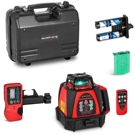 Mit dem Rotationslaser SBS-RL-500G bestimmen Sie rationelle Höhen. Der Linienlaser kommt bei Bauarbeiten im Innen- und Außenbereich, bei Maschinenvermessungen und bei Ausrichtungen zum Einsatz. Dank der Fernbedienung lässt sich der Kreuzlinienlaser auch mit einem gewissen Abstand steuern. Die gerade Laserlinie befindet sich dabei stets im Lot, da der Baulaser sich innerhalb von wenigen Sekunden eigenständig nivelliert. Dabei liegt der Selbstnivellierbereich bei ±5°. Steinberg Systems, Ihr Ansprechpartner für Industriebedarf und Messtechnik, bietet Ihnen mit diesem Messgerät ein hochwertiges Produkt, das langfristig sichere Messergebnisse liefert.