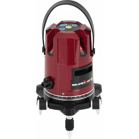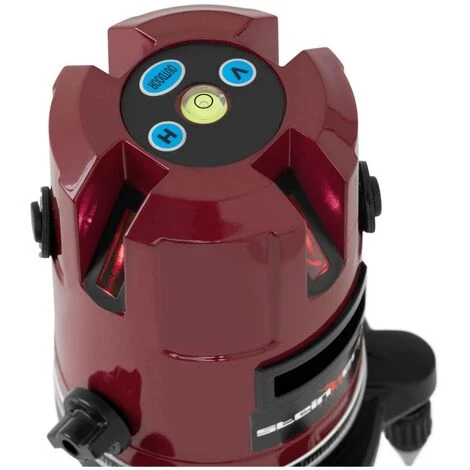 Die praktische Handhabung des Ein- und Ausschaltens der horizontalen und der vier vertikalen Linien macht den selbstnivellierenden Rotationslaser schnell einsatzbereit. Der Kreuzlaser projiziert präzise vertikale und horizontale Laserlinien oder ein Laserkreuz. Auf drei Standfüßen lässt sich der Laser optimal für alle Messungen platzieren und um 360° ausrichten. Bei Bedarf kann es auf einem Stativ (nicht im Lieferumfang enthalten) befestigt werden.