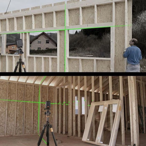 Hellerer grüner Laser: Drücken Sie den Schalter, um dieses Gerät zu aktivieren, es projiziert einen grünen 110°-Weitwinkel-Kreuzlaser, heller und augenfreundlicher als roter Laser, für optimale Sichtbarkeit auch am Tag.