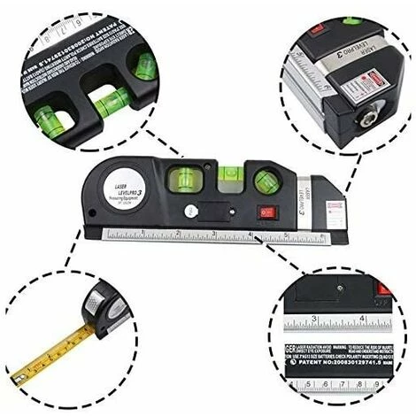 Multifunktionslaser: Richtlinie, Laserstrahl, Lineal und Maßband (8 Fuß) 4 in 1, entwickelt für alle Situationen, in denen eine gerade Linie oder Messungen erforderlich sind. 3 Schichten: der Lasernivellier mit einer Libelle, einer Schweißnaht und einer 45°-Libelle zur Bestimmung der horizontalen und vertikalen Ebene. Für genauere Ergebnisse. Geeignet zum Aufhängen von Bildern entlang eines Treppenhauses, zum Aufhängen von Spiegeln, zum Anbringen von Gardinenstangen und anderen Haushaltsgegenständen; der Laserteil kann separat und allein verwendet werden; nur für drinnen (ideal als vatergeschenk). Einfach zu bedienen: Es ist mit einer Auswahltaste auf der Vorderseite ausgestattet. Es steuert das Umschalten der vertikalen Laserlinie, der horizontalen Laserlinie und des Kreuzlaserlinienmodus, ist für verschiedene Verwendungsmodi geeignet, genauer und stabiler. Funktionalität Projiziert einen vertikalen und horizontalen Laserlichtstrahl. Eingebautes 8-Fuß-Bandmaß mit imperialer und metrischer Skala. Genauigkeit bis 1/32′ und 1 mm. Laserprodukt der Klasse IIIA, Ausgangsleistung weniger als 3,5 mW Zweistufige Blasen Das Laserlicht hat einen Ein-/Ausschalter. Hinweis: Laserentfernungsfehler, der als „+/- 2 mm bei 10 m und 25 m“ angegeben wird. Wenn der Laser die vertikale Ebene oder die horizontale Ebene ist, müssen Sie den Strahl nicht anpassen. Batterien nicht enthalten Merkmale Die Farbe schwarz Produktgröße: 20 (L) x 2,5 (B) x 6 (H) cm Verpackungsgröße: 22,5 * 8 * 4 cm Nettogewicht: 190 g Achtung 1. Strahlungslaser, direkte Augenkontakt vermeiden!< /p>