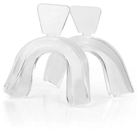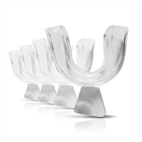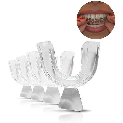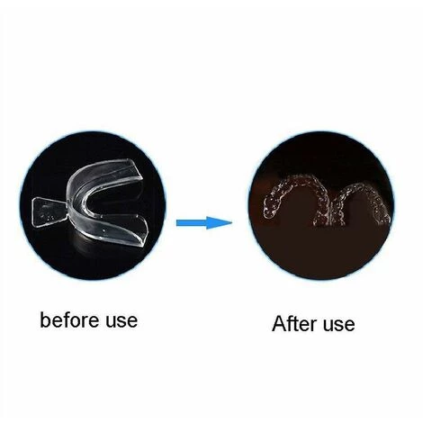 Setzen Sie die Schiene in Ihren Mund, während sie weich ist, und schmiegen Sie sich um Ihre Zähne, indem Sie mit den Fingern fest auf die Innen- und Außenseite Ihrer Zähne drücken. Lassen Sie die Schiene fest werden, während sie sich noch in Ihrem Mund befindet.