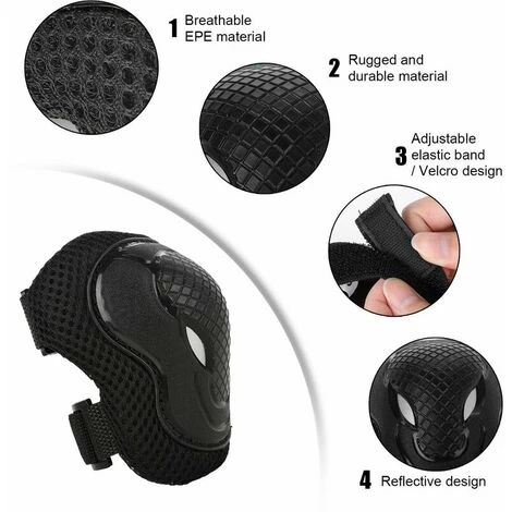 Baby-Inline-Schutzset: 1 Paar Manschetten, 1 Paar Ellbogenschützer, 1 Paar Knieschützer. Die Schale der Baby-Kniestütze besteht aus extrem hartem PVC, einem verdickten weichen Schwamm, bequem und langlebig. Die verstellbaren Schultergurte und der verstellbare Klettverschluss kann Ihnen helfen, die Größe frei einzustellen. Das Schutzset schützt Kinder beim Skaten, Skateboarden, Inline-Skating, Radfahren, Roller und anderen Sportarten. Das Kinderknieschutz-Set ist für Kinder von 4 bis 13 Jahren geeignet. Schützt das Kind vor Kratzern und Stumpfheit, bietet rundum und perfekten Schutz beim Sport