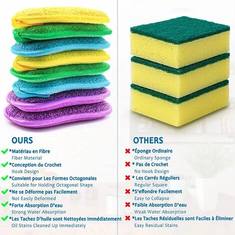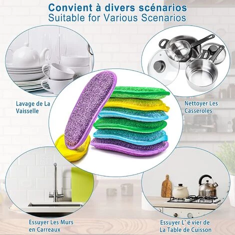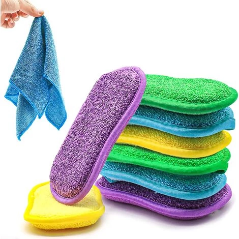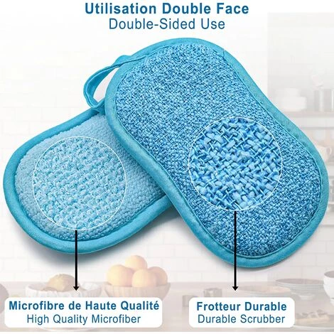 Doppelseitiger Scheuerschwamm: Eine Seite ist Mikrofaser zum Scheuern; die andere Seite entfernt hartnäckige Flecken, ohne sie zu zerkratzen.