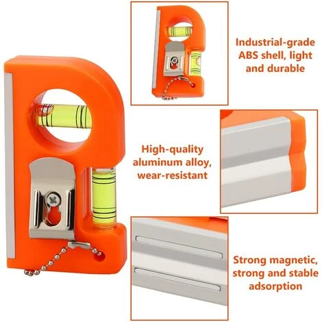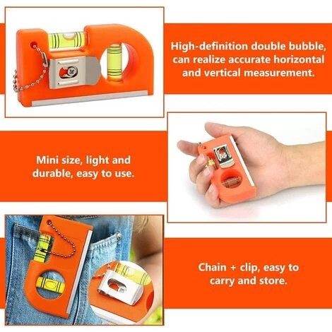 Leicht zu tragen und aufzubewahren: Die magnetische Taschenlibelle hat einen Befestigungsclip aus Metall und eine Metallkette, die leicht zu tragen und aufzubewahren ist. Sie können es in jeder Tasche verstauen, an einem Gürtel oder Schlüsselring aufhängen und bequem verwenden.
