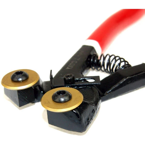 Diese Zange ist ideal für Mosaik, aller Glas- und Tiffany Arbeiten geeignet. Die Zange besteht aus Metall mit zwei hochwertigen Titan-Glasschneiderädern. Mit dieser Glasbeißzange ist ein millimetergenaues Schneiden und brechen der Mosaike möglich. Mosaikzange mit Hartmetall-Schneidrädchen, zum exakten Teilen von Glasmosaik aller Art, sowie Ceraton-Mosaik. Mit der Zange gelingen auch Anfängern schnell und einfach Dreiecksformen, schmale Streifen und mehr. Zudem kann man Glassteine ganz exakt abgeknabbert werden, so dass z.b. exakte Kreise und Rundungen geschnitten werden können. Mit Kunststoffgriff und Feder, damit die Zange wieder von alleine auseinander geht.