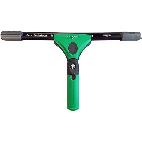 Der abwinkelbare Wischerkopf macht die Arbeit schnell und einfach und macht die Arbeit in der Höhe mit Teleskopstangen sicherer. Die Schwenkfunktion ist perfekt für Arbeiten mit der Stange oder bei schwer zu erreichenden Flächen geeignet. Mit der einfach mit einer Münze verstellbaren Edelstahlschraube können Sie die Spannung erhöhen oder verringern. Durch den innovativen Verriegelungsmechanismus kann die Mittelposition durch Drücken der Sperrtaste fixiert werden (Knopf rein = verriegelt; Knopf raus = frei). Zudem rastet der NINJA Fensterwischer auf den UNGER Sicherheitskonus ein, wodurch es kein Herabfallen oder Verdrehen gibt.