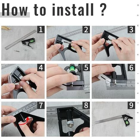 2.Design Abnehmbar: Die Präzise Kombination quadratische Basis und Lineal können separat verwendet werden. Das Design mit verstecktem Markierungsstift ist sicherer und verhindert versehentliche Verletzungen. Es kann nach Belieben zerlegt und zusammengebaut werden und ist bequem zu bedienen.