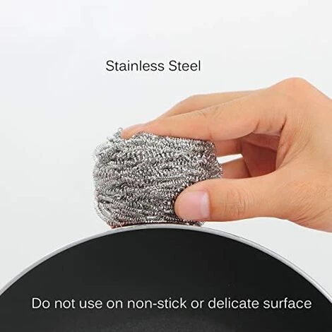 Geeignet zum Reinigen von Grillrosten, Töpfen etc. Es ist ein notwendiges Produkt der Küche (ACHTUNG: Verkratzen Sie mit diesem Edelstahlschwamm nicht die Oberflächen empfindlicher Produkte)