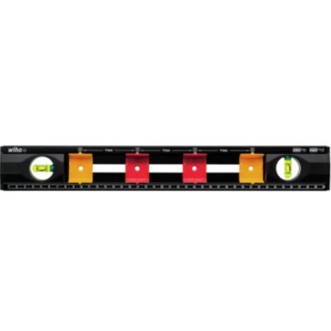 Elektriker Wasserwaage • Anwendung: Zum horizontalen und vertikalen Messen und Markieren von Abstandsmaßen (z.B. Unterputzdosen) • Ausführung: Komfortable Bemaßung aus unterschiedlichen Arbeitspositionen dank raffiniert positionierter SkalenVariable, verschiebbare AbstandsmarkierungenPerfekte Einsehbarkeit beider Libellen auch bei spitzem Blickwinkel
