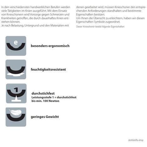 Produkt: Der Fento 100 ist ein riemenloser Knieschoner, der in jede Standard-Arbeitshose mit Knietaschen passt. Er ist durch die keilförmige Erhöhung zum Schienbein hin besonders ergonomisch und weist dadurch eine sehr gute Druckverteilung auf. Sowohl qualitativ als auch konzeptionell unterscheidet er sich wesentlich von den üblichen Kniekissen oder Kniepolstern für Arbeitshosen.