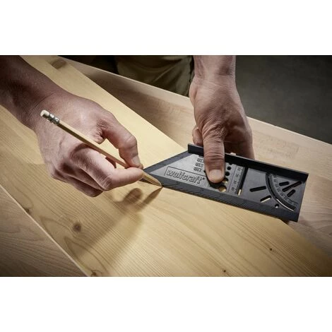Der Wolfcraft 3D-Gehrungswinkel besteht aus hochwertigem Kunststoff und ist mit seiner Zentimeter- und Winkel-Skala vielseitig einsetzbar. Mit diesem Anreißwerkzeug können Sie Maße unkompliziert abnehmen und auf Balken, Rohre und dreidimensionale Werkstücke übertragen. Markierungen führen Sie durch die rechtwinklige Geometrie exakt übereck weiter ideal für das präzise Übertragen von Gehrungswinkeln auf zwei Seiten eines Werkstücks. Mit den Anschlägen von 45°- und 90°-Winkeln und der Skala für freie Winkel zwischen 0° -90° sind Sie für alle Fälle gerüstet. Beim Markieren paralleler Linien dient Ihnen der 3-D-Gehrungswinkel zuverlässig als Streichmaß. Zusätzlich ist er mit einer Bohrlehre bestückt, mit der Sie den Durchmesser eines Bohrers schnell bestimmen.Anschläge für 45°- und 90°-Winkeleinsetzbar als Streichmaß für parallele Linienintegrierte Bohrlehre zur Bestimmung des BohrerdurchmessersFunktionen für dreidimensionale Markierungen Messen und Übertragen von Winkelmaßen 45°- und